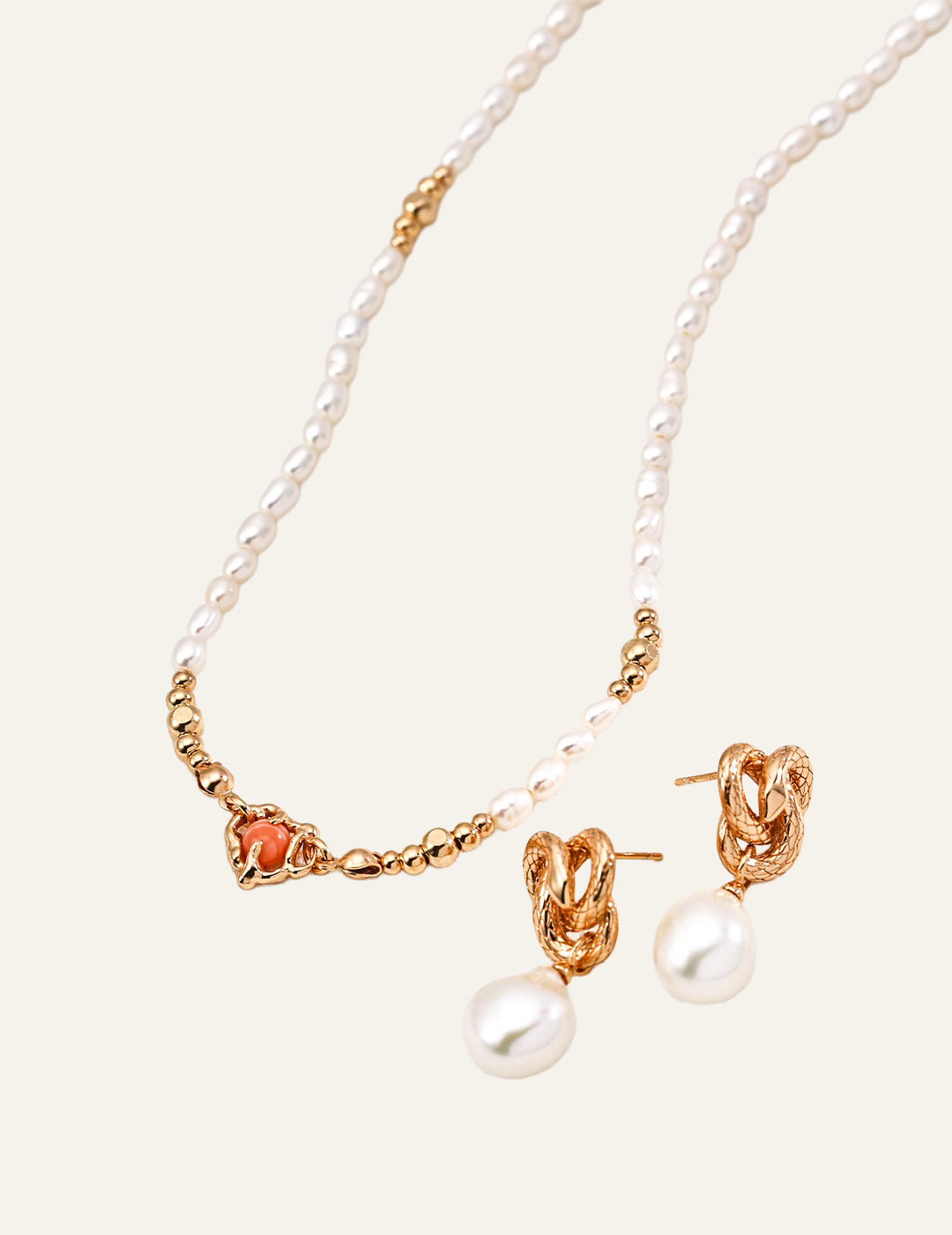 Elysian Pearl & Red Agate Necklace 天然珍珠紅紋石項鍊
